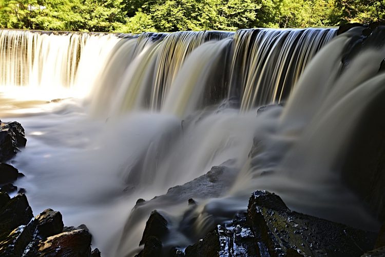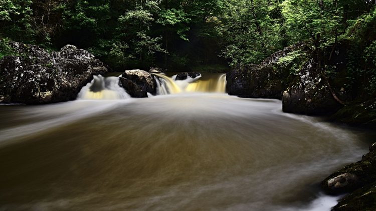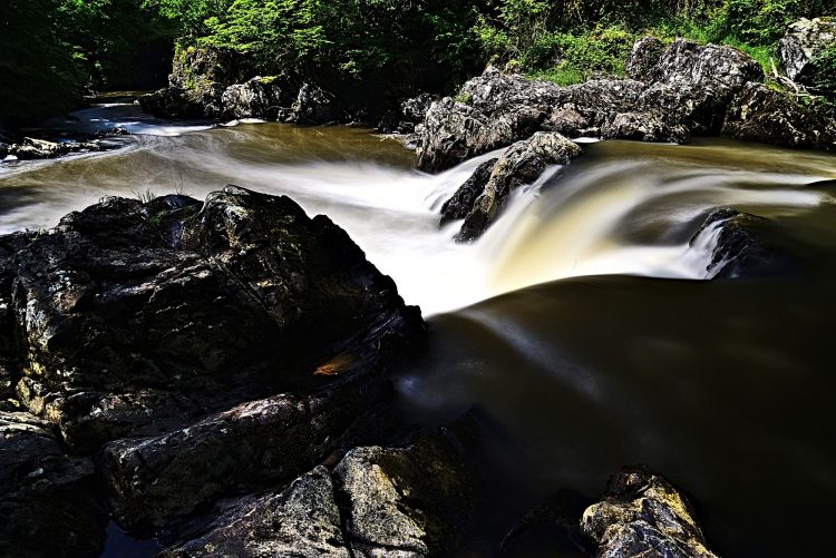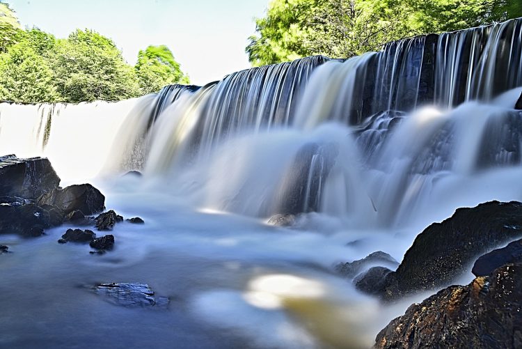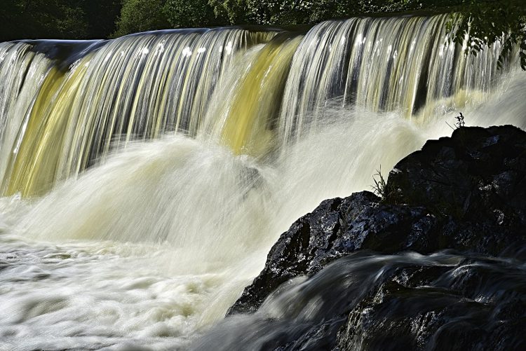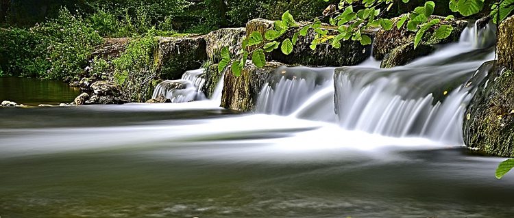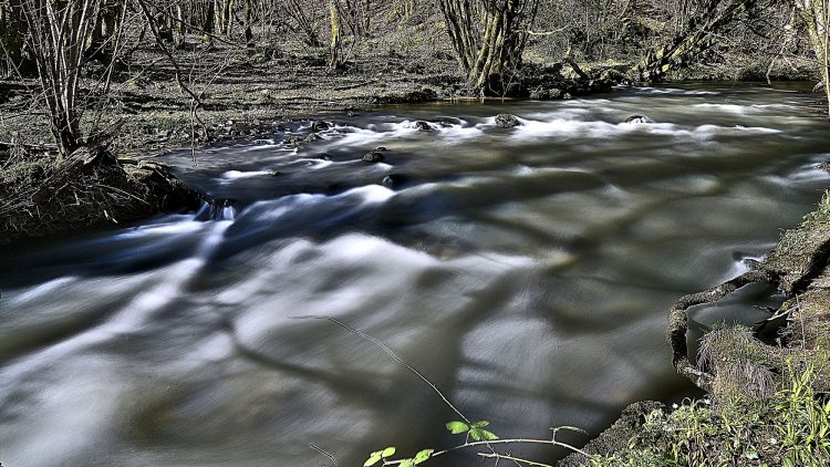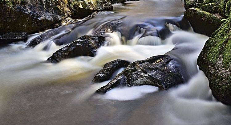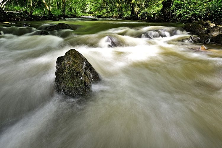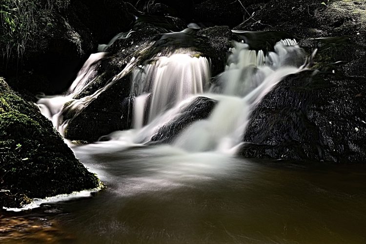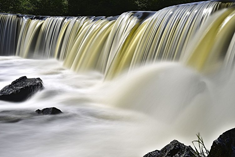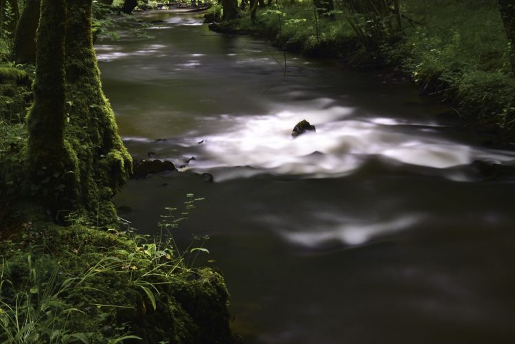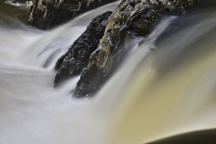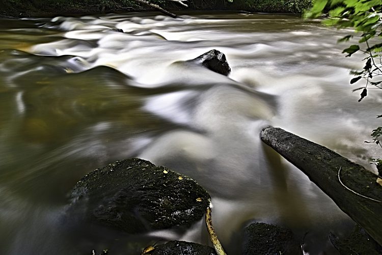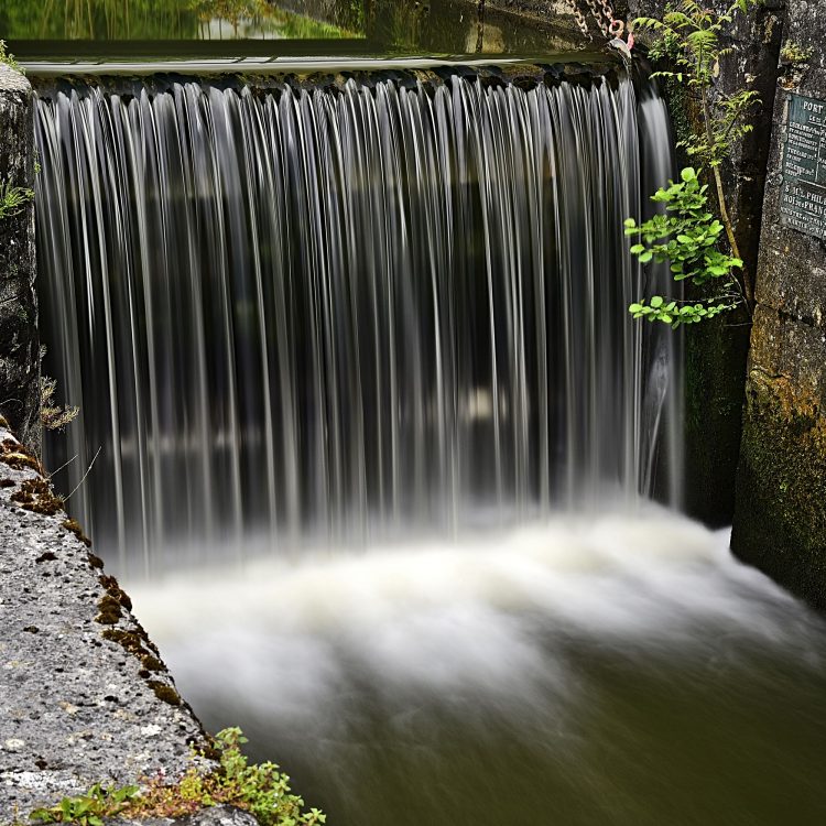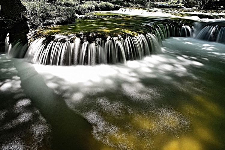 La série « Eaux vives en Périgord » est constituée de paysages de rivières dans le département de la Dordogne et uniquement de rivières aux eaux vives (cascades, chutes, barrages…) ! La technique de la pose longue (ou lente) me sert à bien montrer les contrastes entre le fixe (les rochers, les arbres…) et le mobile (les mouvements de l’eau). Les éléments mobiles (particules d’eau, écume, éclaboussures) laissent au fil des secondes que dure la pose une trace « moyenne » plus floue, plus douce.