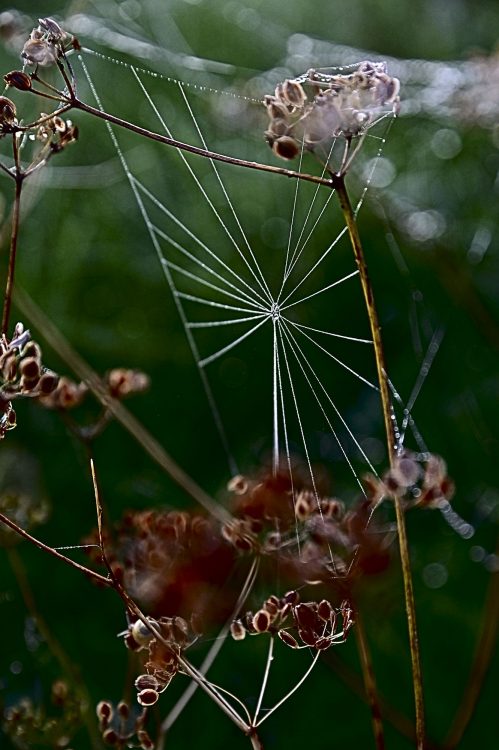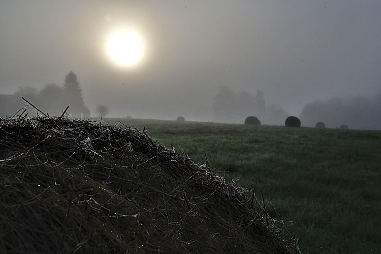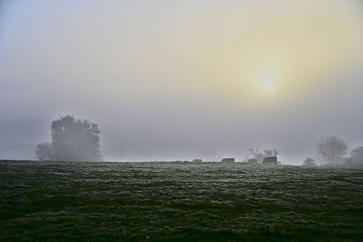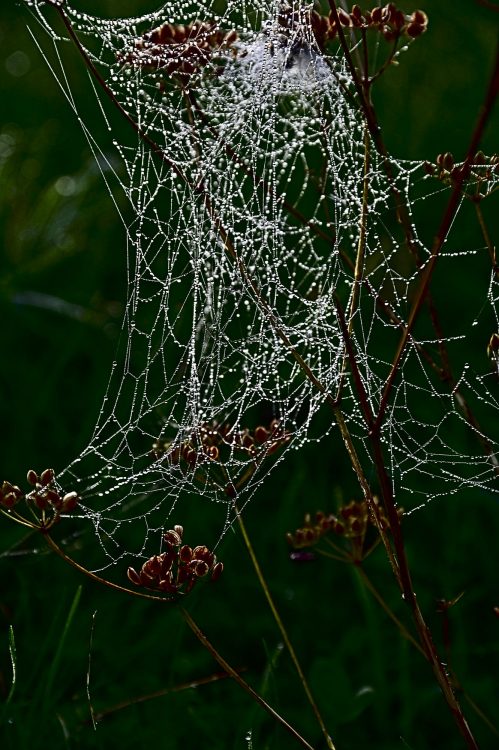 Beaucoup d’humidité dans l’air et sue les éléments du paysage. Pas de doute, l’automne est bien là ! La rosée révèle la moindre toile d'araignée !